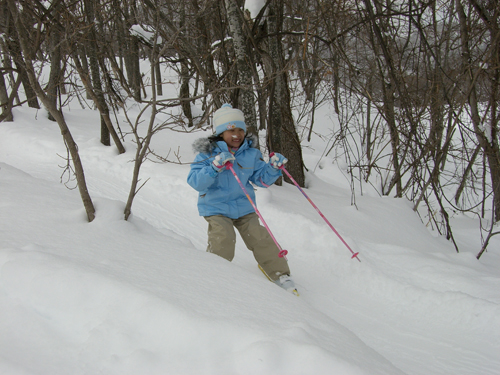 子供たち同士で、勝手に林間コースばかりを滑っているシーンを